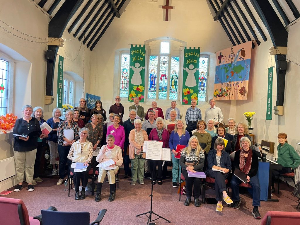 The choir held a singing workshop as part of our 10th anniversary celebration. Forty people, old and new faces, sang a variety of English, African, Georgian and French songs, in rounds and in harmony, led by Jane Read, a ‘natural voice’ singing teacher. Wonderful music the whole day – for one round, the choir was singing in eight parts and the sound was amazing! Lovely lunch. Thanks to all the helpers – especially Jane, Rob, Dot, Esther & Hannah.